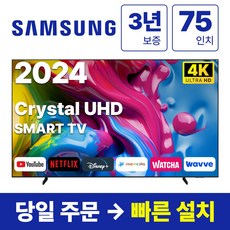 삼성전자 75인치 24년형 크리스탈 UHD 스마트 LED TV 75DU7200 넷플릭스 유튜브, 방문설치, 벽걸이형, DU7200